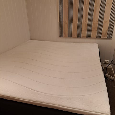 Overmadrass IKEA Tussøy 180 x 200(obs: HARD, tung, tempurliknande, men endrar seg etter/følger kroppen. Kjøpt november 2025. Vi har nesten ikke brukt den da vi har kjøpt en mykere overmadrass.