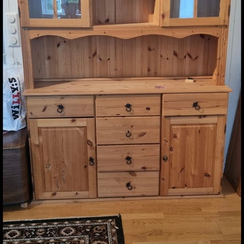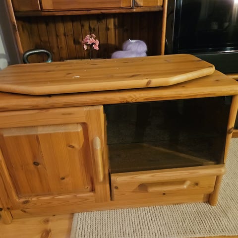 Bakplate løsnet men kan festes, dørene har slått seg, men fungerer. Ene beinet har løsnet, dette følger med og må skrus i på nytt.