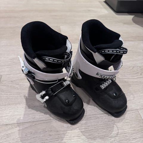skistøvler for barn i svart og hvit farge. Støvlene har to justerbare spenner foran for god tilpasning rundt fot og legg. Mykt, polstret innerfôr gir komfort og støtte. Passer til bruk i alpinbakke med vanlige alpinbindinger for barn.