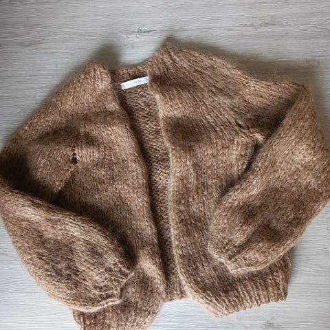 ⭐️ Nystrikket brun mohair cardigan str XL/XXL