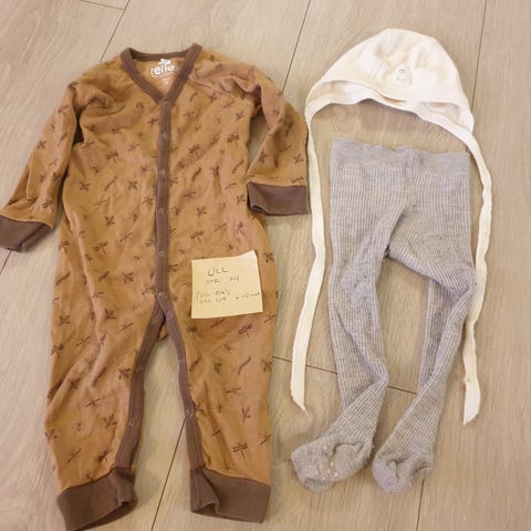 3 stk bodyer i ull i størrelse 74-80 (bodyer med stjerner er 74/80 fra Cubus, mens stripete body er strl. 74 fra Lindex). Klærne er godt brukt og har små anmerkninger her og der (i form av flekker og småhull), selges derfor billig. Mye bruk igjen.