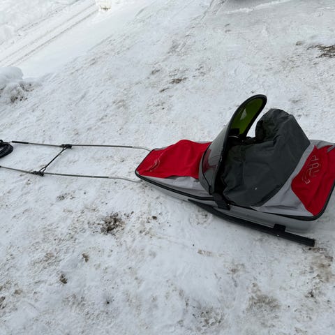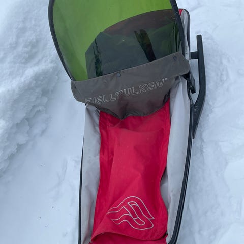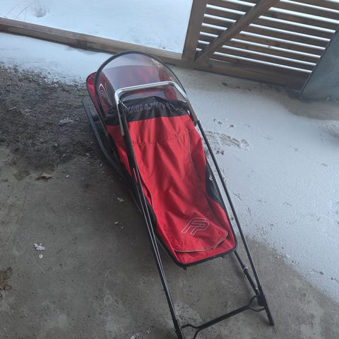Selger en flott og velholdt pulk, klar for nye eventyr i vinterfjellet. Pulken er nyvasket og impregnert, så den er klar til bruk — bare å spenne på seg og ta med barnet ut på tur.