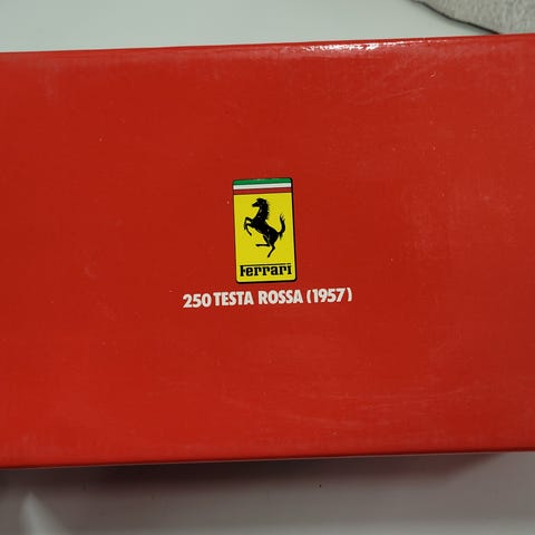 Modellbilen er en detaljert gjengivelse av Ferrari 250 Testa Rossa (1957) i rød farge. Karosseriet er i metall med plastdetaljer. Modellen har åpne dører og panser som viser interiør og motorrom, samt detaljert cockpit med ratt, seter og girspak. Reservehjul og andre detaljer i bagasjerommet er også gjengitt.