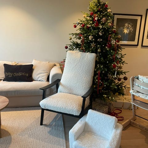 De har mosegrønt ulltrekk, mest sannsynlig originalt. Fremstår som pent brukt, men man kan fint ta litt vedlikehold på treverket for en perfekt finish.