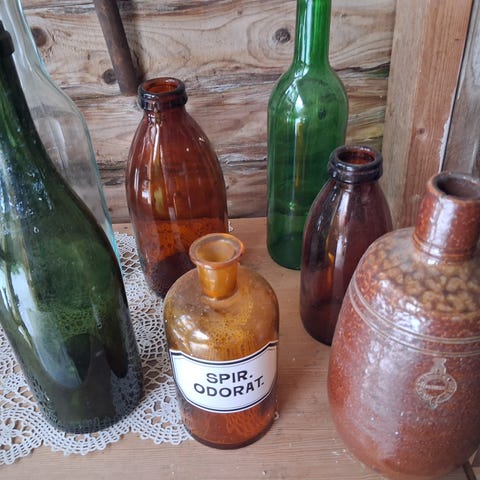 12stk div gamle flasker etc