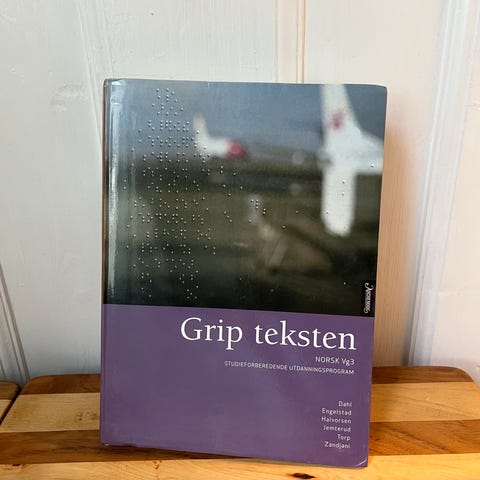 Aschehoug Grip teksten norskverk lærebok i litteratur for Vg1. Boken dekker norskfaget med fokus på litteratur, tekstanalyse og arbeid med ulike sjangre. Egnet som hovedbok i norsk for videregående skole, studieforberedende utdanningsprogram.