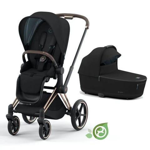 Cybex Priam Platinium Vognen har stor liggedel for spedbarn og sportsdel som kan brukes når barnet blir større. Sportsdelen har justerbar rygg og kalesje. Understellet har fire hjul og romslig varekurv under setet. Håndtaket er ergonomisk utformet. Vognen kan også brukes med babybilstol fra Cybex, som vist på bildene, ved hjelp av kompatible adaptere. Passer til bruk fra nyfødt med liggedel og senere som sittevogn.