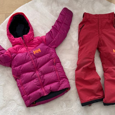 Selling a very gently used kids’ ski jacket and ski pants from Helly Hansen in pink. Our daughter wore this for one ski season and only used it a handful of times. It is in excellent condition with no tears or rips. Bought new for 3000 NOK on the Helly Hansen website.