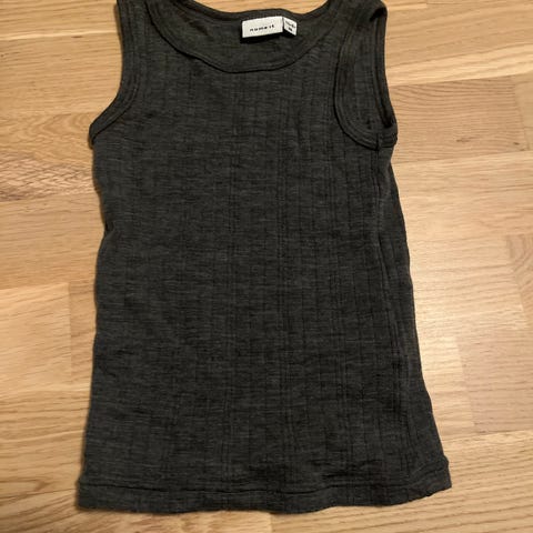 Nøstebarn singlet av ull og silke, størrelse 116. Modellen har brede skulderstropper og rund hals. Passer som innerlag eller som lett topp til hverdagsbruk.