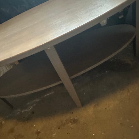 Stilfullt bord fra Lunehjem,flott strukturert topp i metall med stål ramme. bordet har kun få, bruksmerker,men du må vite om det for og se dette. Selges 3000