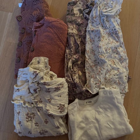 1 tights, 1 cardigan, 1 kortermet tunika og 2 rompere.