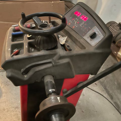 Pent brukt dekkomlegger med hjelpe arm selges samlet med avbalanserings maskin.