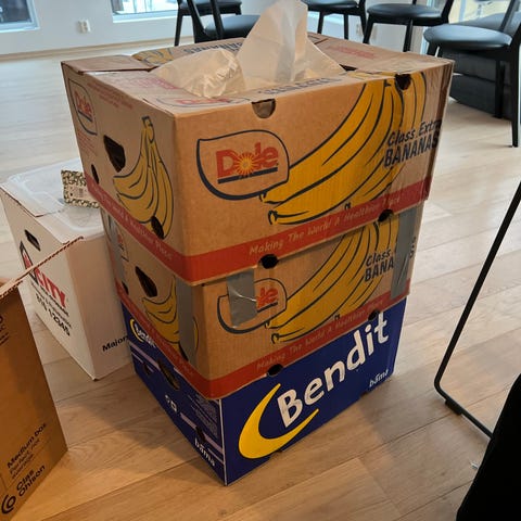 Store flytteesker gis bort. Må hentes med stor bil. Får ikke plass i små biler. Første mann til mølla. Holder ikke av. Alle må hentes samtidig.