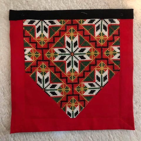 Bringeduk i rødt, sort, grønt, blått og gullaktig farge selges.