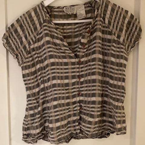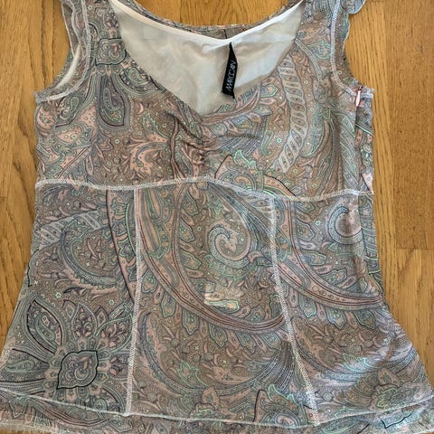 Nydelig topp i 100% silke. Står L på lappen, men tilsvarer nok mer S-M.