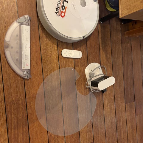 Vaskefunksjonen får ikke ut vann lenger; men i følge nettet er det pga kalk og at dysene er tette. Disse kan åpnes ved hjelp av en nål. Kan ikke sende men hentes i Askim. Følger med to mopper og laderen til støvsugeren.