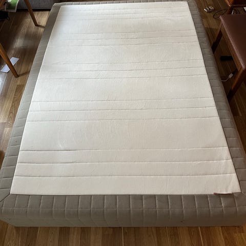 IKEA Sultan madrass/overmadrass i grått trekk. Overmadrassen har avtagbart trekk med glidelås, som kan tas av for lufting eller rengjøring etter behov. Egnet som ekstra komfortlag oppå madrass i seng på soverom eller gjesterom.