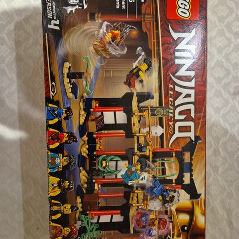 LEGO Ninjago lekesett med stort skip og flere minifigurer. Skipet har detaljerte seil med Ninjago-motiver, dekk med ulike byggedetaljer og tilbehør som våpen og smådeler. Settet inkluderer flere Ninjago-figurer med karakteristiske drakter og utstyr. Egner seg for bygging, lek og som samlerobjekt for Ninjago-temaet.