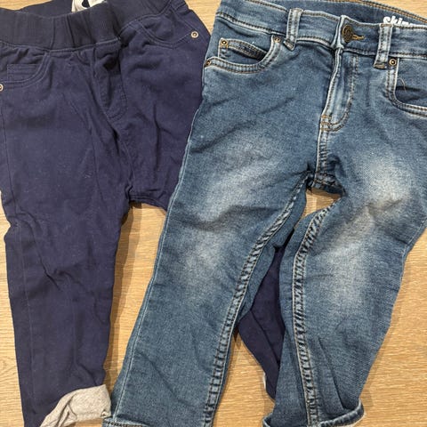 Selger to bukser. Jeansen er nesten ikke brukt, og joggebuksa er pent brukt (men har litt nupper). Ingen hull.