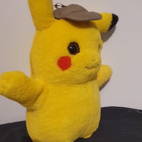 Pokémon Pikachu kosedyr i gul farge. Myk plysjfigur formet som karakteren Pikachu, med broderte øyne, munn og kinn. Egnet som lekefigur eller som pynt på barnerom. Passer for barn som liker Pokémon-universet.