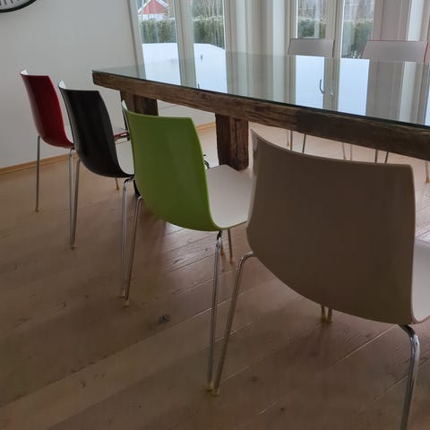 Stoler av type Arper Catifa 46 med meiebein understell i krom.