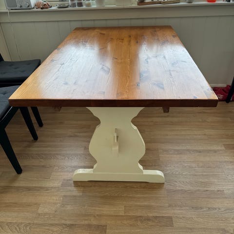 Overflaten er noe buklete og bør slipes ned, men vi har brukt det som det er i to år.