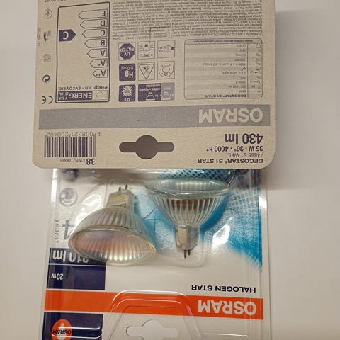 Nye lyspære type halogen star fra Osram 20w / gu 4. 35 mm x 40 mm. (ikke LED-lys)