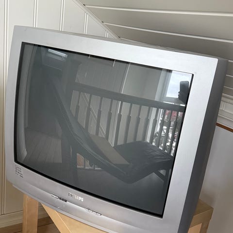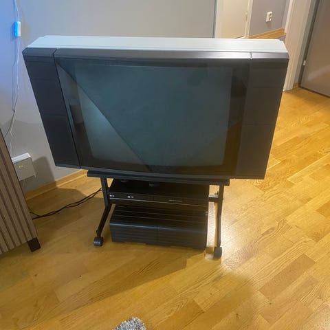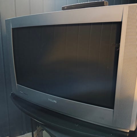 Pent brukt CRT tv i god stand. Originalt bord, fjernkontroll og HDMI til scart adapter medfølger.