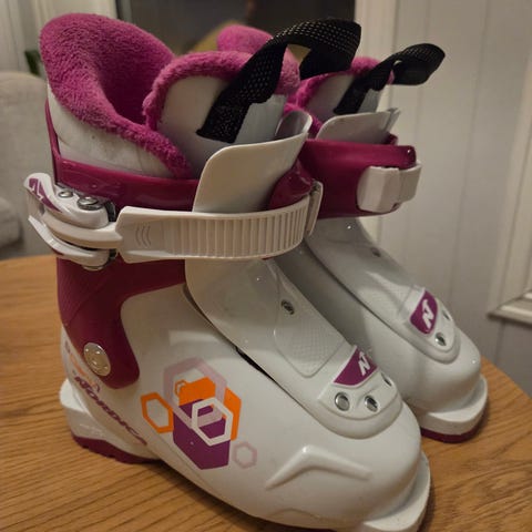 Dalbello Gaia 2 JR alpinstøvler i størrelse 195 mm for barn. Modellen har to justerbare spenner i plast/metall for god tilpasning rundt foten. Ytterskallet er hovedsakelig hvitt med rosa frontparti, og innerskoen er polstret med grått tekstilfôr for økt komfort. Støvlene er beregnet for bruk med alpinski og passer til barn som trenger en kompakt og stabil alpinstøvel i denne størrelsen.