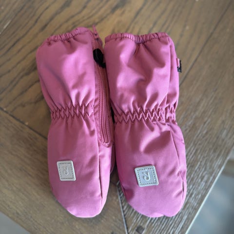Veldig fine og tykke votter, aldri brukt men lappen har blitt tatt av. Glidelås på siden for å gjøre de enklere å ta på. Reima sin størrelse 0, som tilsvarer 0-12 måneder.