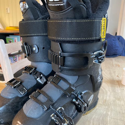 Dalbello Starlett alpinstøvler i hvit og lys lilla farge. Modellen har flere justerbare spenner foran for god tilpasning rundt fot og legg. Mykt, polstret innerfôr gir komfort og støtte. Yttersålen er laget i slitesterk plast med god stabilitet.