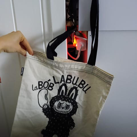 Moomin handlenett i tykk bomull. Nettet har solide bærehåndtak. Passer til daglig bruk, for eksempel til handling, skole eller jobb. En flekk på baksiden, samt noe nupper her og der.
