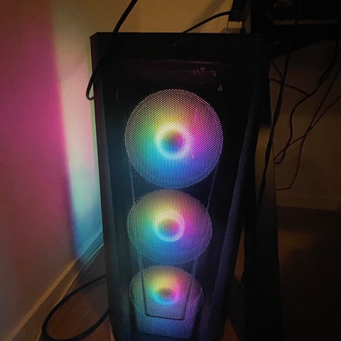 PCen er utstyrt med 7800X3D som fortsatt er noe av det beste du kan få til spilling. Er og såpass sterk at om du skal oppgradere GPU senere så vil den ikke bli en flaskehals. PSU på 1000W sørger for at viften aldri har startet en gang. Den er overkill på en god måte og sikrer mer enn nok watt til hva det måtte være av fremtidig utstyr.
