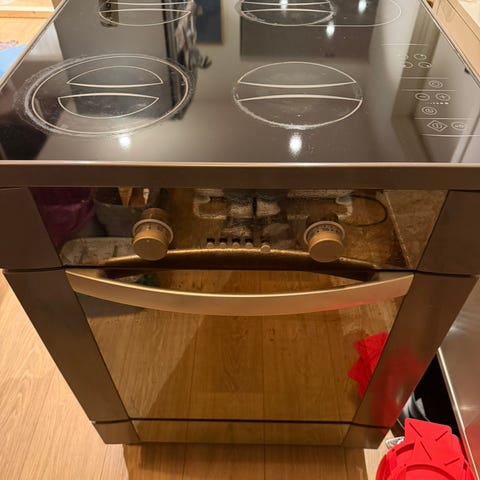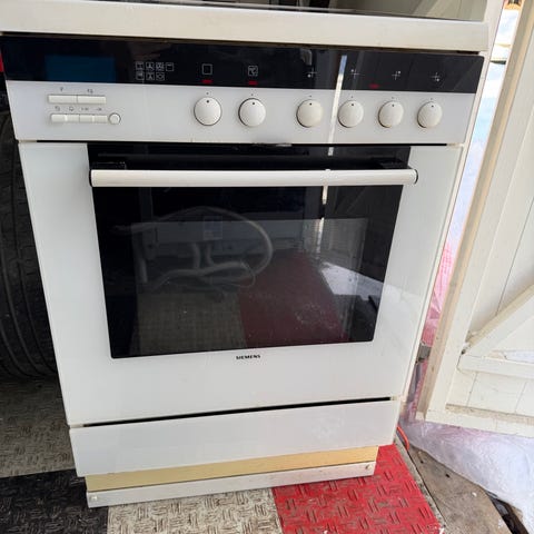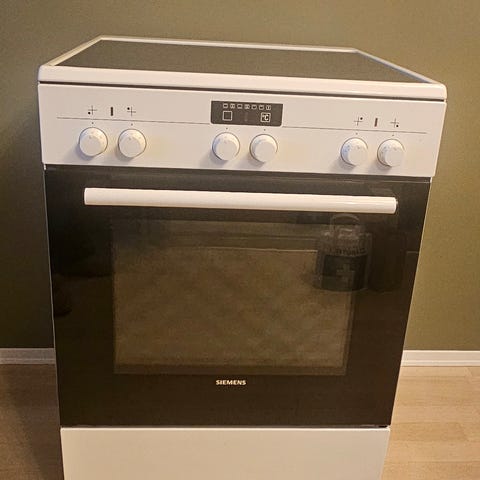 Selger vår eldre komfyr fra Simens ettersom vi pusser opp kjøkkenet. Komfyren har tradisjonelle brytere for plate- og ovnsstyring. Lampen inni steikeovnen fungerer ikke, heller ikke «displayet»/den lille sorte skjermen. Lampen som markerer at ovnen er varm fungerer ikke, men man hører et klikk når ovnen er varm. Ellers fungerer steikeovnen og platetoppen som den skal, men selges billig ettersom den har sine skavanker! Trenger en vask også. Må hentes i 4 etg uten heis.