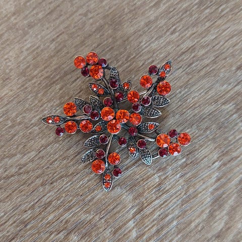 Fin brosje, fra ca 80 tallet, med fin forgylling. Ser ut som alle glass stenene er inntakt. Se bilder.😊Har kun ligget i smykkeskrin ,til dags dato. Ikke brukt.