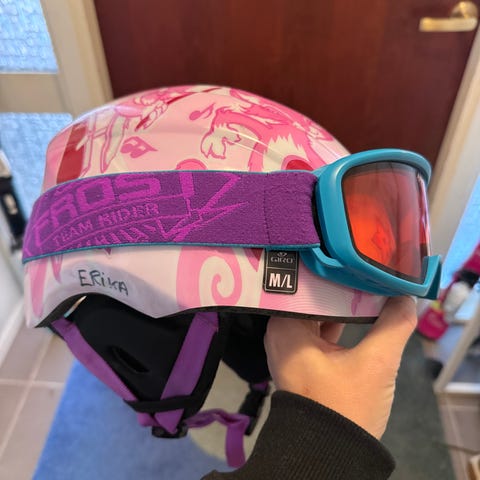 Slalomhjelm barn strl M/L 52-55,5 cm. Mangler feste til briller, men kan fint brukes uten.