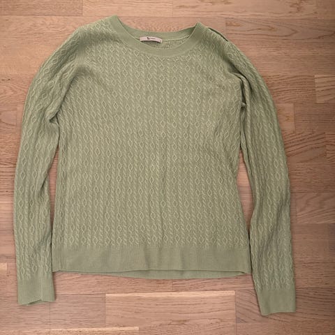 Selger en fin Marie Philippe Olea genser for dame i størrelse XXL. Genseren er turkisgrønn i fargen. Stoffet er en nydelig blanding av merinoull ( 55 prosent ) og bomull ( 45 prosent ). Modellen har rund hals, lange ermer og ribbestrikkede kanter nederst og ved ermene. Dette er en genser man kan bruke til både hverdags og pent som også er god og varm å ha på seg.