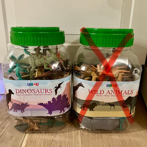 I denne krukken er det samlet figurer fra det originale settet, pluss mange ekstra dinosaurer fra andre produsenter for å lage en enda større samling.
