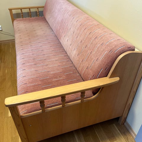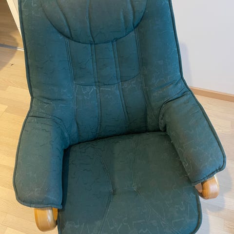 Retro sofa i nydelig grønn farge gis bort da jeg ikke finner igjen putene til setet .
