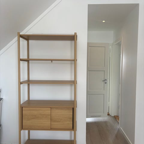 Reol med 2 skuffer, 1 dør og 2 hyller hvit/eik