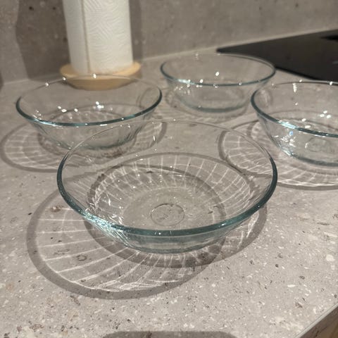 Ny 2 stk Iittala Kastehelmi bolle i klart glass. Bollen har det karakteristiske dråpemønsteret rundt hele skålen. Egnet til servering av dessert, snacks, tilbehør eller som liten serveringsbolle på bordet. Klassisk design som passer sammen med annet servise i Kastehelmi-serien eller nøytralt glasservise.