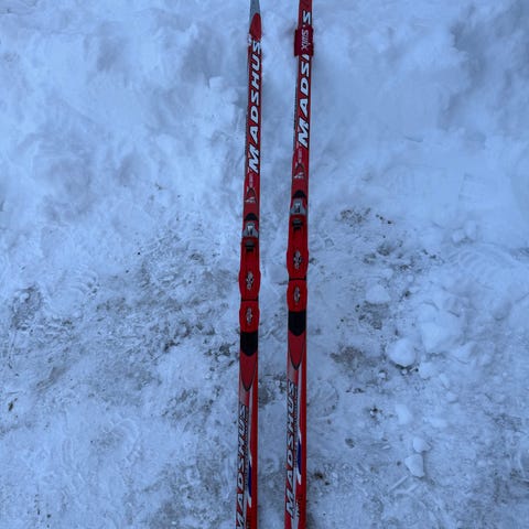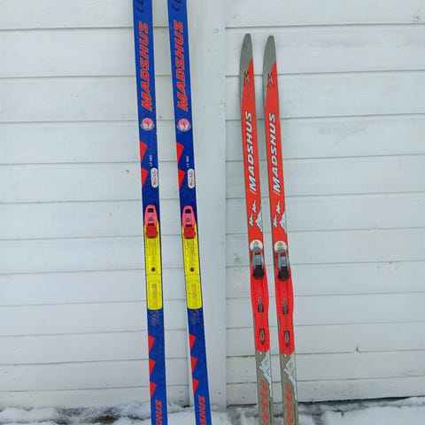 Madshus 765 MG langrennski i lengde 130 cm. Skiene er røde med mønster i hvitt og blått. Undersiden har mønsterstruktur for feste og gli. Leveres med monterte bindinger av klassisk type som passer til støvler med tilsvarende system. Egner seg til klassisk langrenn og turbruk for barn eller lettere løpere som trenger ski rundt 130 cm lengde.