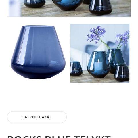 Produktet har en glatt, konisk form med avrundet bunn. Egner seg som dekorativt innslag i interiøret, for eksempel på bord, hylle eller vinduskarm. Laget i farget glass med blank overflate.