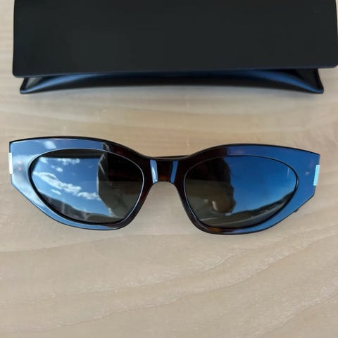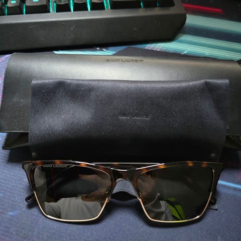 Saint Laurent SL572. Rektangulær innfatning med helramme og fargede glass. Svært lite brukt. Original etui medfølger.