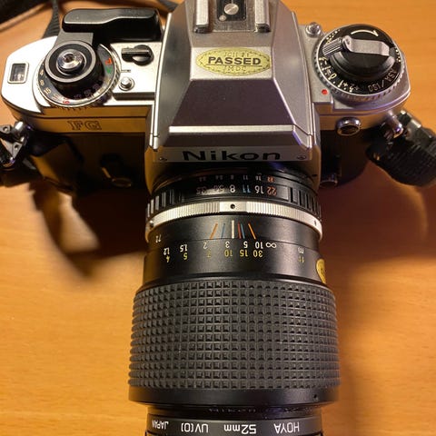 Nikon speilreflekskamera med utskiftbart objektiv. Kameraet har manuelle innstillinger for blant annet fokus og eksponering, og er egnet for fotografering med ulike typer objektiver avhengig av behov. Passer til generell fotografering som portretter, landskap og hverdagsbilder, avhengig av valgt film eller innstillinger. Objektivet har zoomring og fokusring for manuell justering. Ytterligere spesifikasjoner som nøyaktig modell, brennvidde og tilkoblinger avhenger av den konkrete varianten som følger med kameraet. Selges raskt gjennom vipps.