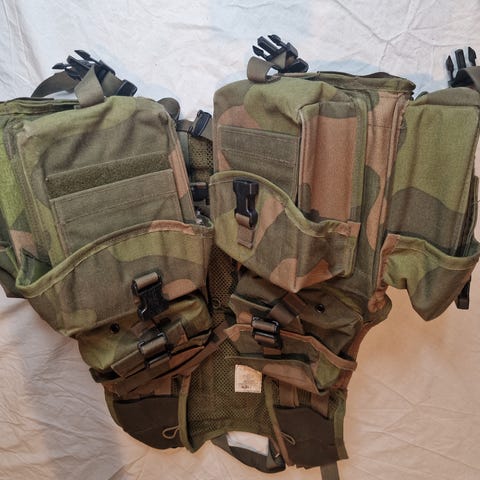 Pent brukt Triple mag pouch til typ m4, ak, g36c, aug magasiner. Plass til 2 magasiner i hver lomme, spesielt m4 mags. Solid kvalitet, HDT Camo.