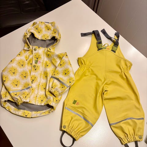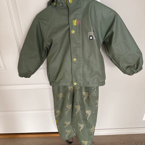 Helt nytt regnsett (plask) fra kattnakken selges for 700kr. Nypris 1000kr. Farge mose. Passer godt til bruk hjemme eller i barnehagen på regnværsdager.