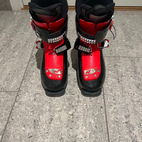 Nordica skistøvler i størrelse 23.0 i hvit og blå farge. Støvlene har fire justerbare spenner og stropp øverst for enkel stramming og tilpasning. Ytterskall i hardplast gir god støtte rundt fot og ankel. Innvendig polstret innerstøvel for komfort og varme. Passer til bruk med alpinski og standard alpinbindinger.