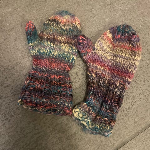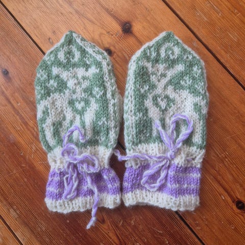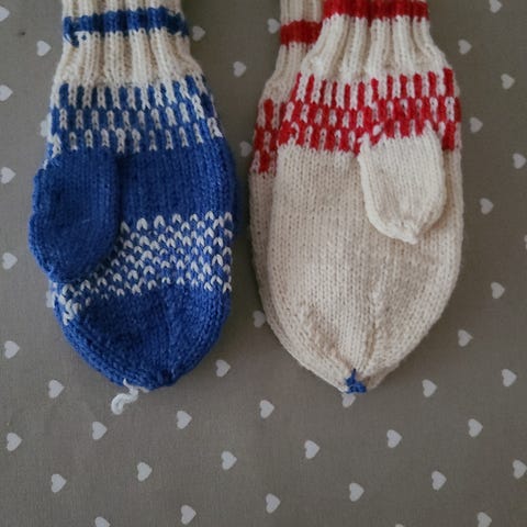 Hjemmestrikkede votter. Ca str 2 år