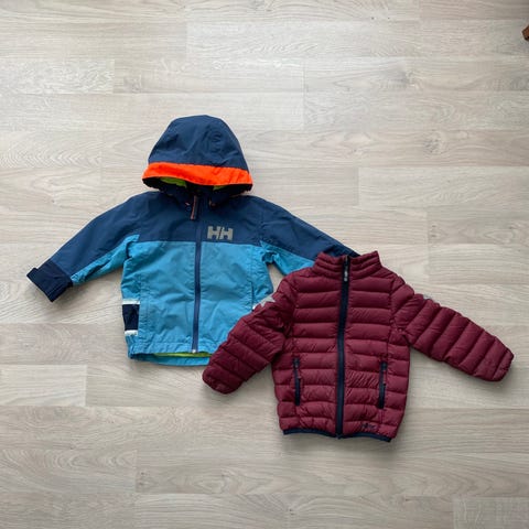 Tre stk hele og pene jakker i str 128. Dunjakke, skalljakke med og uten fleecefor.